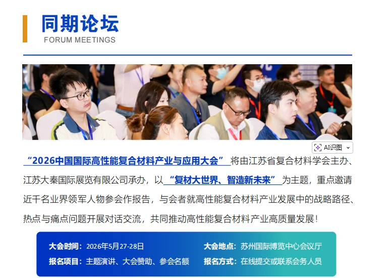 Dates de l'exposition : du 27 au 29 mai 2026 Lieu de l'exposition : Centre international des expositions de Suzhou Lieu : N° 688, avenue Suzhou Est, parc industriel de Suzhou, ville de Suzhou Échelle du salon : 20 000 mètres carrés de surface d’exposition, 20 000 visiteurs, 500 exposants Organisateur : Société provinciale des matériaux composites du Jiangsu