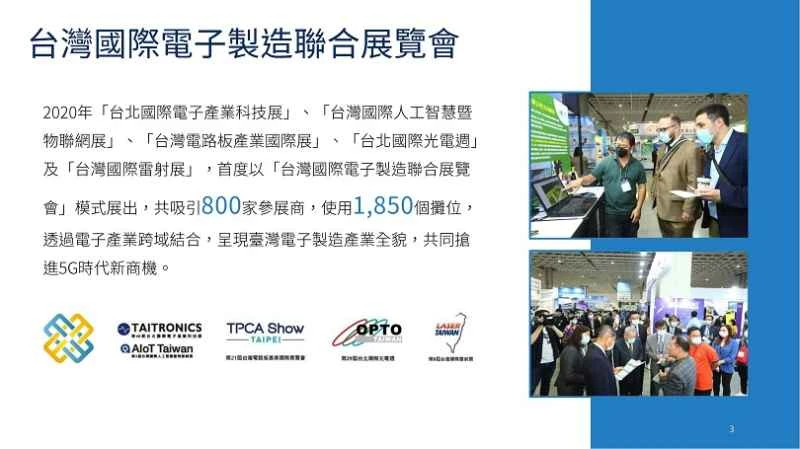 Le Salon de l'électronique de Taïwan (TAITRONICS) est le plus grand et le plus complet salon de l'électronique de Taïwan. Organisé par le Conseil taïwanais de développement du commerce extérieur (TAITRONICS), il suit de près les tendances mondiales de l'industrie électronique, propose des espaces d'exposition spécialisés et offre des perspectives d'avenir pour le développement de ce secteur.