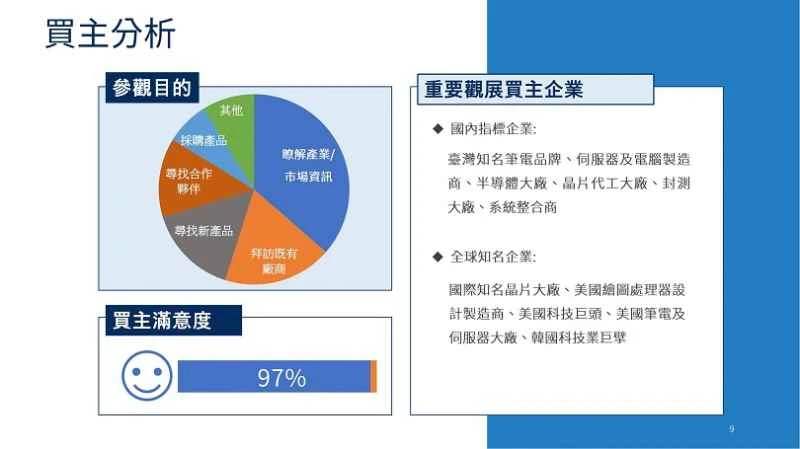 1. Consultez la page de l'exposition concernée ou le site web officiel du Taiwan Electronics Show. 2. Cliquez sur le bouton « Réservation de billets » ou « Soumettre une demande » pour accéder à la page de réservation. 3. Remplissez vos informations personnelles comme indiqué, y compris votre nom, votre numéro de téléphone et votre numéro d'identification. 4. Soumettez la demande après avoir confirmé que les informations sont correctes. 5. Après avoir reçu le message de confirmation, conservez les informations de confirmation provenant du SMS, de WeChat ou de l'e-mail.Présentation du salon de l'électronique de Taïwan :